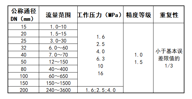 旋進(jìn)旋渦流量計(jì)流量范圍表