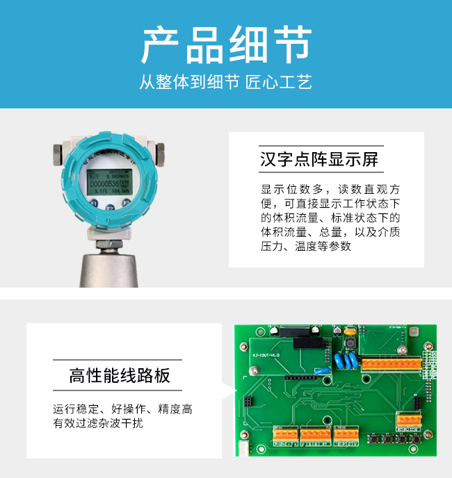 該流量計集流量、溫度、壓力檢測功能于一體,并能進行溫度、壓力、壓縮因子自動補償;無可動部件,穩(wěn)定可靠,壽命長,長期運行無須特殊維護;采用智能抗震技術(shù),有效的抑制了震動和壓力波動造成的干擾信號;可輸出頻率脈沖、4~20mA模擬信號,并具有RS485接口;表頭可360度旋轉(zhuǎn),安裝使用簡單方便;可用內(nèi)電池供電,也可外接電源。