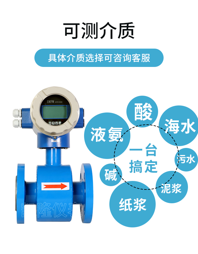 可測量介質(zhì):水、污水、鹽水、海水、空調(diào)水、消防水、循環(huán)水、硫酸、鹽酸、硝酸、醋酸、堿溶液、泥漿、紙漿、煤漿、果漿、果汁、礦泉水、飲用水、自來水、醬油、果醬、啤酒、果汁、米酒、牛奶等導(dǎo)電液體,特別適用于酸堿類有腐蝕性的液體。